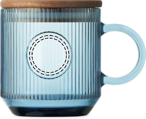 Ribbad glasmugg med lock av akacia. Volym: 300 ml. FSC®-certified | FSC 100%, W16.3, FSC-C213206