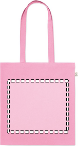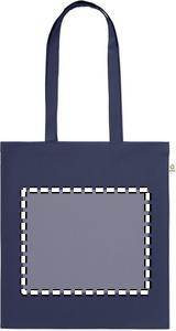 Kasse av återvunnen bomull (70% återvunnen bomull och 30% RPET) med långa handtag. 140 gr/m². Ur ett hållbarhetsperspektiv är detta material väldigt fördelaktigt.