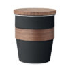 Mugg med enkelvägg i återvunnet rostfritt stål (90% återvunnet rostfritt stål och 10% rostfritt stål) med handtag och lock i valnöt. Volym: 350 ml. Ta bort greppet vid rengöring. Eftersom den har enkelvägg kan värmeöverföring fortfarande förekomma.