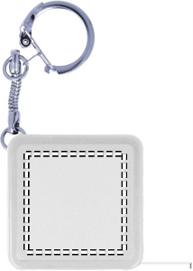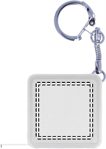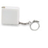 Nyckelring i plast med måttband i stål som mäter 1 meter.