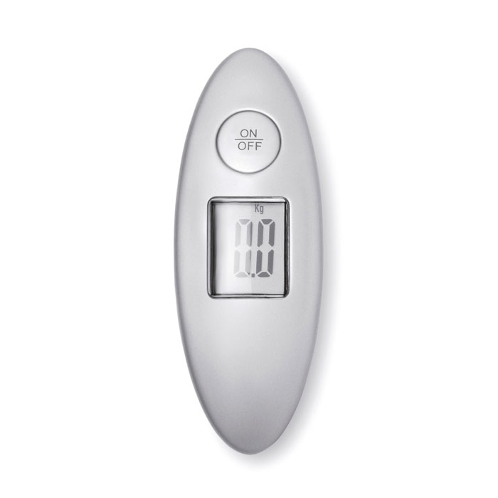 Bagagevåg i ABS-plast material. Maximal kapacitet: 40kg. Väger i kilogram eller pounds. Drivs med 1 cells batteri (ingår). Individuell förpackning i silver kartong.