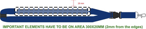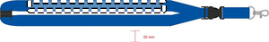 Logoband med metallkrok, avtagbart spänne och säkerhetsspänne i nacken. 25 mm brett. Sublimeringstryck endast på vit produkt.