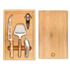 Ost och vin set i bambu. Ostkniv och Osthyvel i rostfritt stål. , Servitörskniv och flaskförslutare. Setet levereras i exklusiv bambuask där locket kan användas som serveringsbricka.