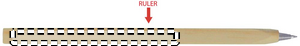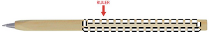 Träpenna med linjal tryckt på pennan. Blått bläck.