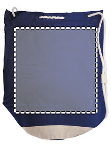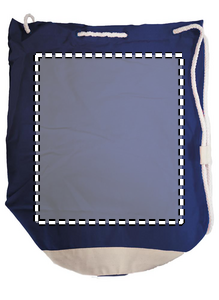 Marinblå seglarväska i bomullstwill med vit rand. 200gr/m2. Rymmer 6 liter.