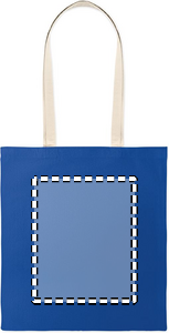 Kasse i bomull med långa handtag. 140 gr/m².